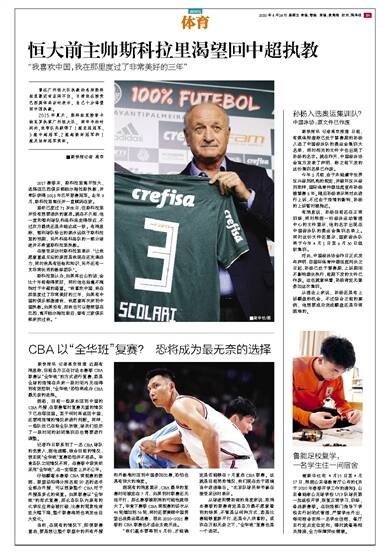 曾在广州恒大队执教的名帅斯科拉里最近有点闲不住,日前他在接受巴西媒体采访时表示,自己十分渴望回中国执教。
