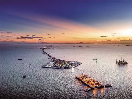 ■6月17日清晨,在经过6.5个小时的系泊后,深中通道首节沉管开始正式沉放对接,11时45分,对接顺利完成,深中通道建设取得重大进展。通讯员供图
