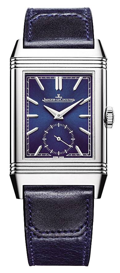 积家Reverso Tribute 翻转系列小秒针腕表 表盘的设计灵感源自1931年诞生的第一款Reverso翻转系列腕表,外围设有轨道式分钟刻度环,别致的装饰艺术风格彰显优雅风度,海军蓝色调更添绅士气派。 |