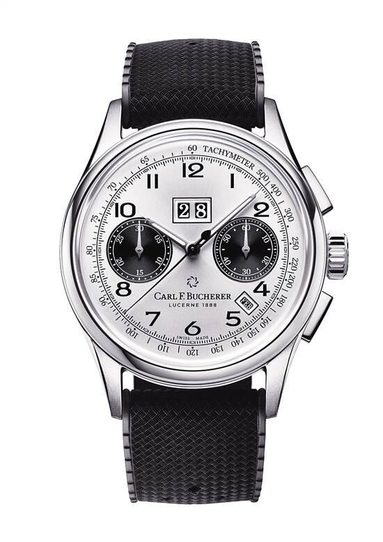 宝齐莱传承系列年历 双盘计时码表精钢款 50年代的经典古董腕表款,银色表盘配黑色计时器及压纹橡胶表带,简约大气,全球限量888枚。41毫米大表壳,除计时功能外,还有年历功能及大日历显示。 |