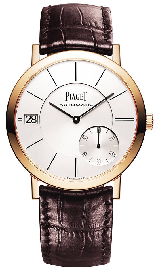 PIAGET伯爵 Altiplano至臻 超薄系列腕表 40毫米的玫瑰金表壳,伯爵自制1205P超薄自动上链机械机芯,诠释温润君子的大气之美。三层架构的银色表盘饰以黑色时标及巴顿指针,演绎简约而不简单的优雅。 |
