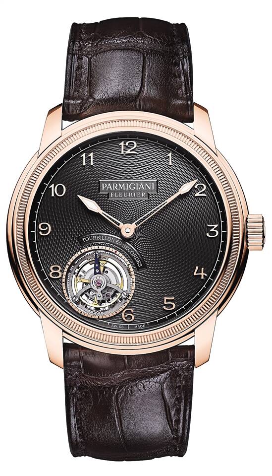 帕玛强尼寰宇系列 Toric Tourbillon Slate腕表 机芯配备铂金微型摆陀、飞行陀飞轮与日内瓦波纹装饰板桥,飞轮集成于主夹板之内,因此表款相对纤薄,与表盘深灰色大麦粒机刻图纹相得益彰。 |