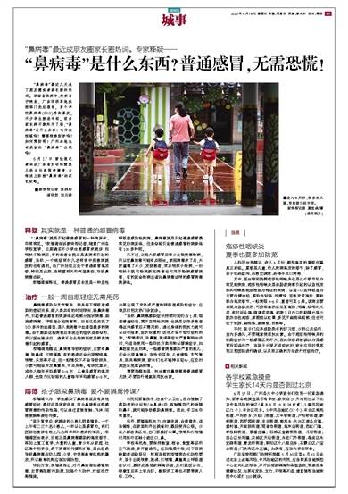 ■新快报记者 黎秋玲 通讯员 刘元铃 “鼻病毒”最近几天成了朋友圈或者家长圈的热词。湖南省株洲市、陕西省宁陕县、广东深圳等地疾控部门先后报告,多个学校鼻病毒(RhV)感染暴发,不少学生接连