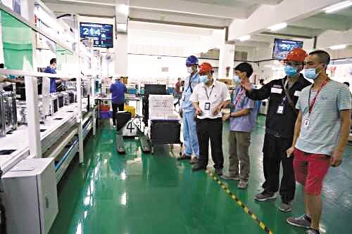 ■中山供电局黄圃分局工作人员到格兰仕公司车间了解企业用电需求。马婷/摄 |