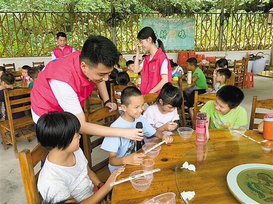 今年暑假,10名大学生志愿者来到广州从化吕田三村村,为这里的留守儿童送去暑期的特别课程。该项活动参与志愿者来自中山大学新华学院及名为“广州筑梦队”的志愿服务团队。新快报记者获知,该项目是广州市妇女志愿者协会在广州市妇女联合会的指导下组织的暑期支教活动,并与华润万家、从化吕田三村留守儿童之家共同开展。 “从2012年开始,每年我们都会组织假期的支教活动,今年暑期的支教时间是从7月27日至7月30日。这次设计的课程内容非常丰富,有科学课堂、手工课堂、礼仪课堂、国学课堂、运动课堂等多种载体形式,此外还新增一项内容——儿童防性侵安全保护宣讲课。”广州市妇女志愿者协会的工作人员称,通过精心设计课程内容,志愿者们给当地的留守儿童带来知识的饕餮盛宴,让他们度过一个快乐、难忘而有意义的假期。 ■本版统筹:新快报记者 潘芝珍 ■本版采写:新快报记者 严蓉