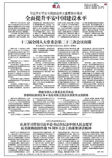 根据全国人大常委会有关决定 香港特区政府宣布4名反对派立法会议员丧失议员资格