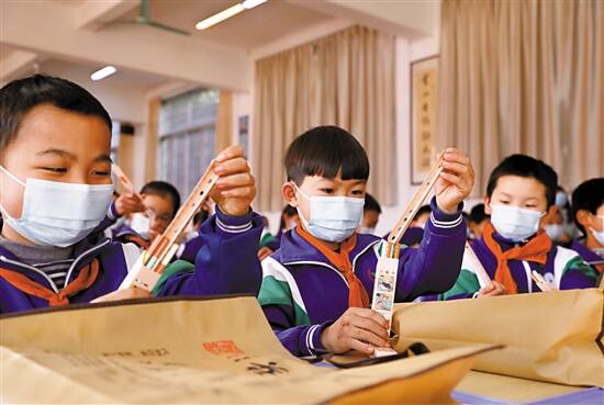 ■小朋友们课堂上了解南粤古驿道文创产品铅笔盒。 |