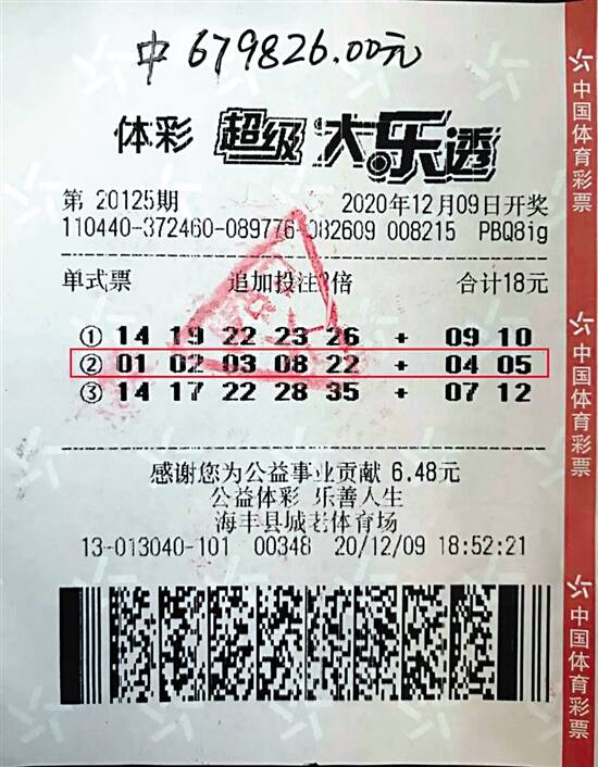 新快报讯 记者陆妍思 通讯员粤体彩报道 大乐透第20125期开奖中,汕尾市海丰县城老体育场4413013040号体彩实体店的一购彩者,凭借一张18元随机单式票3注2倍追加投注,喜中追加二等奖2注,收获奖金达679826元。 近日,陈先生(化名)来到汕尾体彩中心领取奖金。陈先生说:“我平时只是偶尔买一下彩票,有时候都没有去核对是否中奖,这次是体彩实体店业主告知才知道自己中奖的”。 原来,开奖之后,陈先生并没有第一时间去核对中奖号码,而是照常去实体店继续投注顺便兑奖时,实体店业主告诉他中大奖。当时陈先生有点发懵,直到看到实体店门面挂着的喜讯横幅,再看看自己手上的彩票号码与开奖号码,这才知道自己是真的中大奖了。 整个兑奖过程,陈先生表现得很淡定。当被问及中奖心情,他表示:“因为购彩只是偶尔的乐趣,没有想过中奖与否,只当作是一种缘分,所以心情并没有大起大落。但还是要感谢体彩,今后也会继续平常心支持体彩公益事业。”
