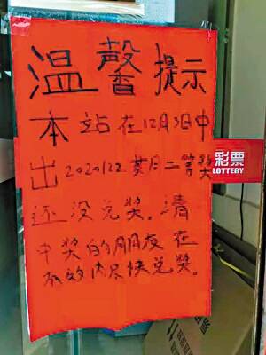 新快报讯 记者陆妍思 通讯员周萍华报道 中了大奖一定要及时兑奖,肇庆一位双色球二等奖得主,中奖一个多月了,依然迟迟没有现身。彩民们赶快拿出您的彩票仔细核对,万一就是您呢? 2020年12月3日晚,福利彩票双色球游戏第20122期开奖,摇出开奖号码为:红球“12、15、17、24、26、31”;蓝球“15”。广东共中出二等奖90注,其中1注花落肇庆市鼎湖区永安镇永莲路65号首层商铺第五卡的44170523福彩投注站,中奖金额为63384元,从开奖之日至今,中奖得主仍未现身兑奖。 44170523福彩投注站销售员表示,得知大奖得主一直未兑奖,销售员在站点门口显著的位置张贴了温馨提示,提醒彩民认真核对彩票及时兑奖,希望中奖得主看到后能尽快现身领奖。投注站销售员对中奖者毫无印象,平时是路过上门买彩票彩民的居多。对于这次的中奖,投注站销售员表示非常开心,有了中奖的名气,以后肯定会有越来越多的彩民被吸引过来。 根据《彩票管理条例》,彩票中奖者应当自开奖之日起60个自然日内,持中奖彩票到指定的地点兑奖,逾期不兑奖的视为弃奖,弃奖奖金纳入彩票公益金,直接用于社会公益事业。肇庆福彩在此提醒广大彩民,彩票是兑奖唯一凭证,购彩后一定要仔细保管好彩票并及时核对,请有购买本期彩票的广大彩民认真核对彩票,尽早到肇庆市福彩中心办理兑奖手续,避免造成弃奖的遗憾。