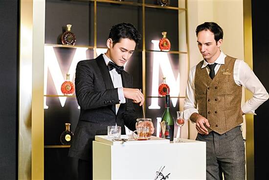 ■人头马大中华区荣誉大使袁弘先生灵感激发,现场创作“弘运”鸡尾酒。 |
