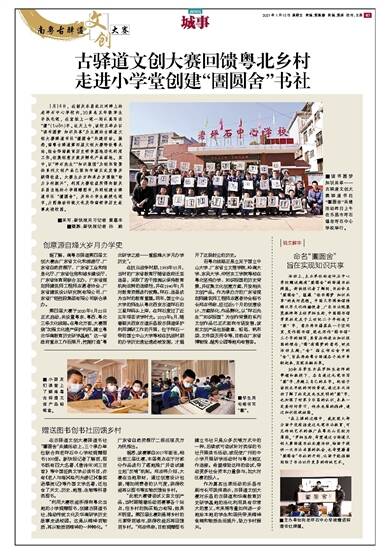 1月14日,在韶关乐昌武江河畔上的老坪石中心学校内,30多名五年级学生手执毛笔,在宣纸上一笔一划认真写出“圕”(tuǎn)字。这天上午,该校正举办以“读书圆梦 知识共享”为主题的古驿道文创大赛驿道