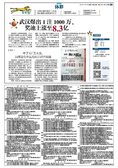 武汉爆出1注1000万,奖池上涨至8.3亿