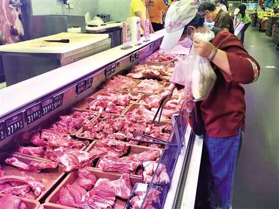 ■广州一家超市,一位市民在选购肉类商品。新快报记者 李小萌/摄(资料照片) |