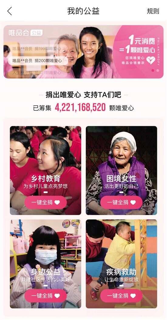 一直以来,唯品会公益通过搭建“我的公益”平台,为每一位会员提供便捷的公益参与方式。近日,“我的公益”平台全新升级,并暖心推出“唯爱心公益计划”,以此为纽带,为用户提供更多公益互动玩法,探索电商公益的多元参与方式。 ■新快报记者 郑志辉 “你购物,我捐款” 每张订单都有爱 当公益遇到电商,会出现怎样的火花呢?唯品会公益近期上线的“唯爱心公益计划”为我们提供了绝佳的范本。区别于简单的“捐款支持”,唯品会通过“你购物,唯品会捐善款”的方式,让每一张订单都有爱,更有互动性。 用户可以在唯品会APP里通过购物消费、消费晒单等多种方式获得“唯爱心”,并将“唯爱心”投票给自己支持的公益项目。公益项目的唯爱心筹集目标达成后,由唯品会中国捐赠善款,助力项目开展。 多元公益项目 帮助每一个TA “唯爱心公益计划”并非只面向某一类群体推出公益项目,而是全面、多元地覆盖多领域公益需求——TA可能是身患重病的孩子,“唯爱心”可以支持患儿的治疗费用,减轻患儿家庭的经济负担;TA可能是因为种种原因失去上学机会的学生,“唯爱心”可以帮助他们重拾书本,早日回归校园;TA可能是渴望陪伴和温暖的留守儿童,“唯爱心”可以让他们的心声与故事,得到陪伴,聆听与回应;TA可能是遭遇困境的单亲母亲,“唯爱心”可以带给她们专业便捷的公益服务,让她们重燃对生活的信念和勇气。 “唯爱心公益计划”持续通过“我的公益”平台,联合社会各界上线优质公益项目,搭建多元力量创新协作的端口,为用户提供更便捷的公益参与方式,实践“行小善,成大爱”,打造一个共融和谐的社会。 发挥电商企业优势 赋能公益慈善事业 作为华南首家在美国纽交所上市的电子商务企业,早在2011年,唯品会就成立了电商行业首个慈善基金会——广东省唯品会慈善基金会,并于2017年12月5日,经广东省民政厅同意,被认定为慈善组织。 唯品会慈善基金会以可持续发展为核心,以平等赋能为支点,以跨界互联为创新引擎,汇聚大众爱心能量,持续支持公益慈善事业。唯品会还建立了完善的志愿者管理体系,积极鼓励员工参与社区发展的相关活动和各类公益实践,公司每位员工每年都有一天的带薪公益假期用于参与各项公益活动。 近年来,唯品会充分发挥特卖电商的优势,以“赋能”为核心,打造了唯爱助学、唯爱工坊、唯爱妈妈等旗舰公益项目。未来,唯品会将继续以“传承品质生活,提升幸福体验”为使命,积极发挥电商企业优势,履行企业社会责任。