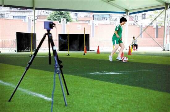 ■广州中考体育考试昨起开始,三大球今年首次进入选考项目,其中足球代替了跳绳成为考生最热门选择。新快报记者 郗慧晶/摄
