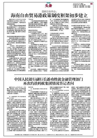 中国人民银行副行长潘功胜就金融管理部门 再次约谈蚂蚁集团情况答记者问