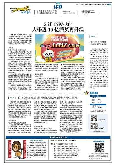 10亿大派奖首期,中山、肇庆购彩者齐中二等奖