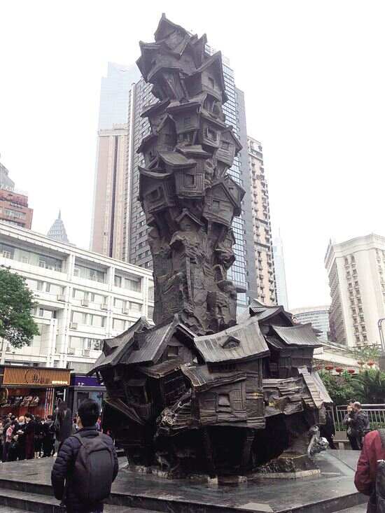 ■据荆楚网,由网友投票评选出的“全国十大丑陋雕塑”出炉,重庆“记忆山城”吊脚楼雕塑上榜。 |