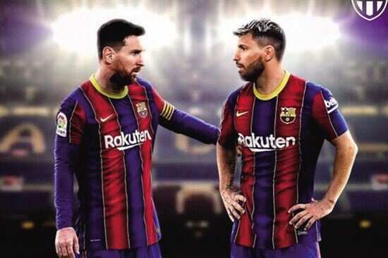 ■阿圭罗(右)加盟的消息还没正式宣布,就有P图。 |