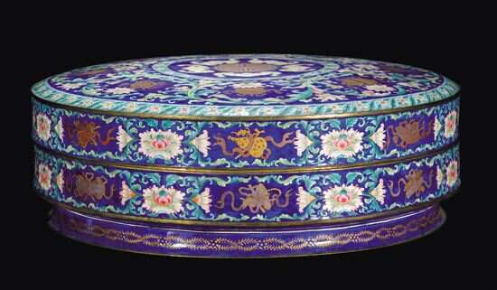 ■清乾隆铜胎画珐琅花卉福寿八宝双层盒。 粤博供图 |