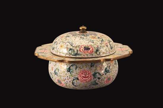 ■清乾隆铜胎画珐琅花卉纹香盒。粤博供图 |