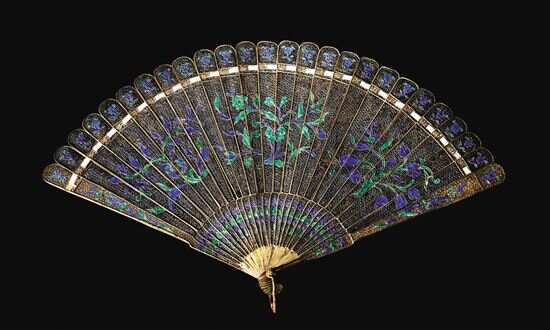 ■清银鎏金烧蓝花卉镂空折扇 粤博供图 |