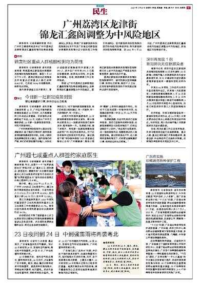 新快报讯 记者高镛舒报道 昨日,广州市卫健委网站发布《广州市荔湾区龙津街锦龙汇鑫阁疫情风险等级调整通告》。其指出,根据广东省新冠肺炎防控指挥办《关于印发广东省应对新型冠状病毒肺炎疫情分区分级防控