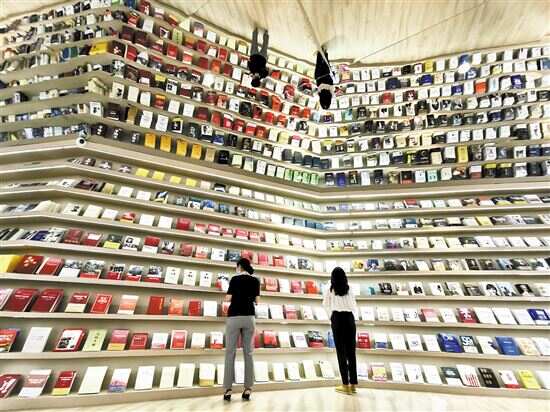 ■“中小企业能办大事”先行示范馆,开阔的书吧为企业员工提供了阅读交流的场所。新快报记者 李小萌/摄 |