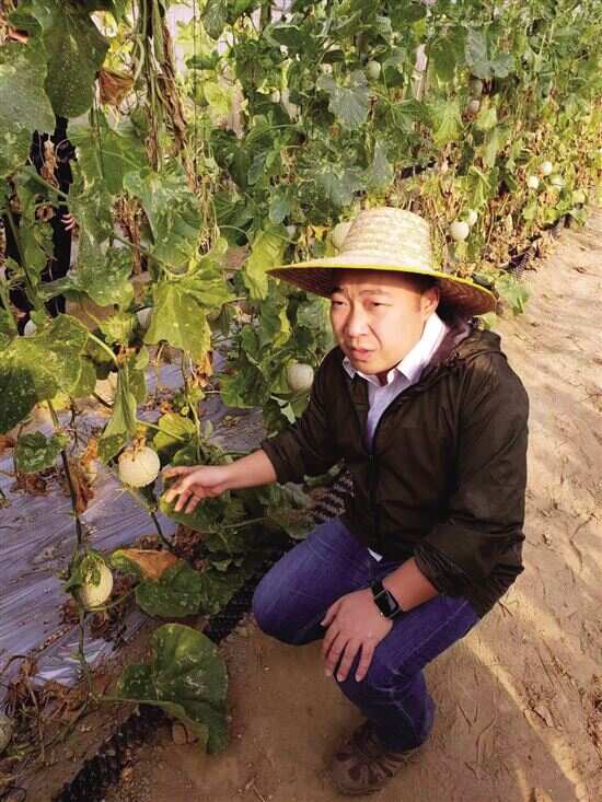 ■驻村工作队员手上的网纹蜜瓜小巧精致。 |
