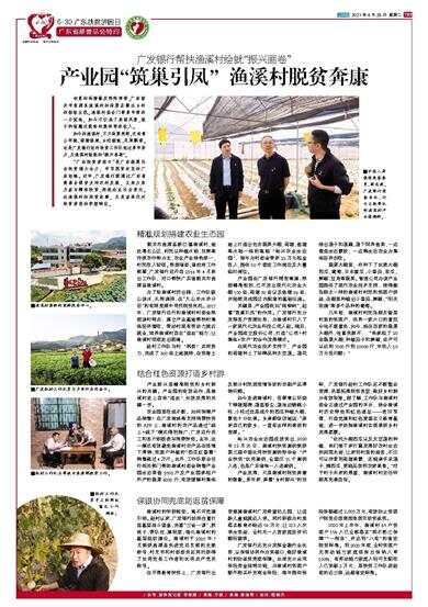 广发银行帮扶渔溪村绘就“振兴画卷” 初夏的荷塘散发阵阵清香,广东韶关市翁源县渔溪村的荷景点缀出乡村的勃勃生机。渔溪村委会门前多年前的一片荒地,如今不仅成了美丽风景,莲子和莲藕还能给村集体带来收入。 如今的渔溪村,不只荷景亮眼,还有青山环绕、绿塘摇滟、乡径蜿蜒、瓜果飘香。这是广发银行驻村扶贫工作队经过多年努力,为渔溪村绘就的“振兴画卷”。 “广东扶贫济困日”是广东凝聚社会扶贫强大合力,书写脱贫攻坚的广东经验。近年,广发银行既通过广东省慈善会捐资支持农村发展,又亲力亲为参与精准扶贫,担起企业社会责任。在渔溪村的扶贫故事,正是该单位对扶贫济困的积极响应。 精准规划捐建农业生态园 韶关市翁源县新江镇渔溪村,地处粤北山区,村民以种植水稻、甘蔗等传统农作物为主,农业产业结构单一,村民收入较低。根据省委、省政府工作部署,广发银行总行自2016年4月派出工作队,对口帮扶广东省韶关市翁源县渔溪村。 为了给渔溪村找出路,工作队跋山涉水,扎根调研,在“九山半水半分田”的有限资源中寻找脱贫良机。2017年,广发银行总行和渔溪村村委会根据该村特点,建立产业基地帮扶村集体经济增收,带动村现有劳动力就近就业,培养渔溪村自主“造血”能力,让渔溪村彻底走出困境。 驻村工作队与村“两委”共同努力,完成了300亩土地流转,在贫瘠土地上打造出包含蔬果大棚、荷塘、鱼塘等水陆一体的高能“裕兴农业生态园”,每年为村委会带来22万元租金收入,提供50个固定工作岗位及大量临时岗位。 产业园由广发银行捐资筹建,根据精准规划,已开发出现代化农业大棚100亩、荷塘30亩以及鱼塘86亩,并陆续完成园区内配套的基础设施。 关键是,产业园犹如“梧桐树”,起着“筑巢引凤”的作用。广发银行充分发挥客户资源优势,为渔溪村引入了一家现代化农业科技公司入驻。随后,产业园成立股份公司,打造“公司+村集体+农户”的合作发展模式。 在现代农业技术支持下,产业园的荷塘种上了珍稀品种太空莲。莲花结出莲子和莲藕,莲下饲养鱼类,一边营造生态景致,一边靠生态农业为集体经济创收。 蔬菜大棚里,亦种下了优质大棚西瓜、葡萄、日本蜜瓜、小番茄、苦瓜、辣椒、豆角等蔬果。管理公司为该产业园提供了现代农业技术支持,使得像张群太一样的渔溪村村民和贫困户获益,在棚里种植出小番茄、辣椒、“阳光玫瑰”等多个品种的葡萄。 几年前,渔溪村村民张群太曾是村里的贫困户,供养一家六口的重担令他不堪重负,如今,站在自家的蔬菜大棚外,他喜笑颜开: “我承租了20亩蔬菜大棚,种植茄子和辣椒,亩产可以达到7000斤到10000斤,年收入10万元没问题!” 结合红色资源打造乡村游 产业振兴是精准脱贫和乡村振兴的关键。产业园的有效运作,是渔溪村走上自我“造血”,长效发展的关键一步。 农业园里收成不断,如何保障产品销售?在广发商城等支持消费扶贫的APP上,渔溪村的农产品通过“线上+线下”模式得到推广,广发总行员工和客户积极参与消费扶贫。去年,这一模式有效避免渔溪村农产品在疫情下滞销,贫困户种植的“西瓜红番薯”销售超过4万斤。此外,工作队联合总行相关部门帮助渔溪村委会销售产业园生态草鱼2500斤及产业园承租户所产的蔬菜6000斤,有效缓解村集体及部分村民因疫情导致的农副产品滞销问题。 如今走进渔溪村,苍翠青山环绕下绿塘摇滟、莲蕊香尘,莲池边蜿蜒小径,小径过处是成片的西瓜种植大棚,景色十分优美。乡亲都惊讶地说:“原来自己的家乡,一直有这样的美丽的资源。” 裕兴农业生态园成效突出,2020年12月25日,渔溪村扶贫案例荣获第三届中国优秀扶贫案例报告会“产业扶贫”优秀案例,全国仅15个案例入选,也是广东省唯一入选案例。 产业发展,只是渔溪村脱贫奔康的缩影。多年来,奔着“乡村振兴”的目标,广发银行驻村工作队还不断整合资源,巩固拓展脱贫攻坚,做好乡村振兴有效衔接。据了解,工作队与渔溪村委会正通过产业园的平台,结合渔溪村历史特色和红色遗址——老旧军营,打造党建和红色爱国主义教育基地,进一步助推渔溪村实现美丽乡村发展愿景。 “依托大棚西瓜以及太空莲的种植,我们接下来打算发展好农村生态休闲观光游,让来到村里的游客,不仅可以欣赏到荷塘美景,还能亲手采莲子、摘西瓜,更能品尝到农家美食。”对于村子未来的展望,渔溪村村主任何群英充满自信。 保银协同兜底防返贫保障 渔溪村的华丽蜕变,离不开党建引领。驻村以来,广发银行始终注重打造基层战斗堡垒,完善“三会一课”,抓班子、带队伍、建制度,强化渔溪村的基层组织建设。渔溪村于2020年7月荣获翁源县先进党总支部的光荣称号,村支书和村委委员还同时获得了优秀党务工作者和优秀共产党员称号。 在开展教育扶贫上,广发银行出资修建渔溪村广发希望幼儿园,让适龄儿童能就近入学。同时积极为村里落实教育补贴近56万元,让213人次学生受益,全村无一人因家庭经济问题而辍学。 广发银行还充分发挥金融行业优势,以保银协同作为突破口,做好渔溪村的防返贫兜底保障。此举充分运用保险资金独特功能,为渔溪村贫困户额外购买补充商业保险,每年提供保险保额超过2,000万元,有效防止贫困户脱贫后因病因疫因灾致贫返贫。 2020年上半年,渔溪村63户贫困户156人已全