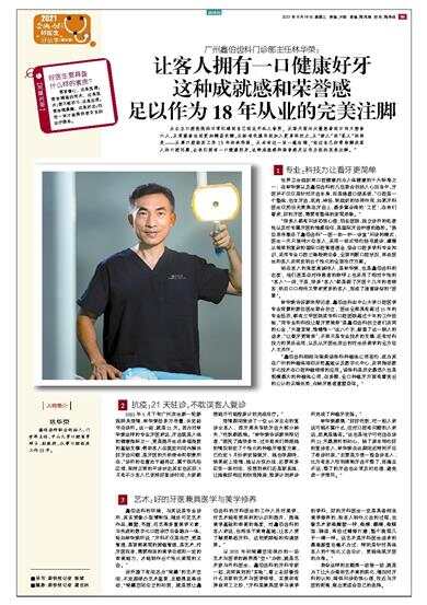 广州鑫伯齿科门诊部主任林华荣: 从公立口腔医院的日常忙碌到自己创业开私人诊所,从每天面对大量患者到日均只接诊六人,从常规诊治到更加精益求精,从标准化操作到加入更多科技力,从“病人”到“客人
