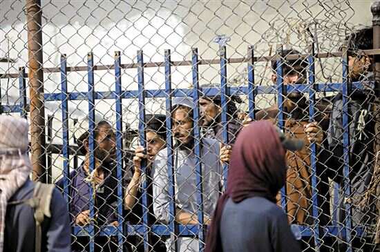 ■3日,阿富汗民众在巴基斯坦与阿富汗的边境口岸多尔哈姆等待过境。新华社发 |