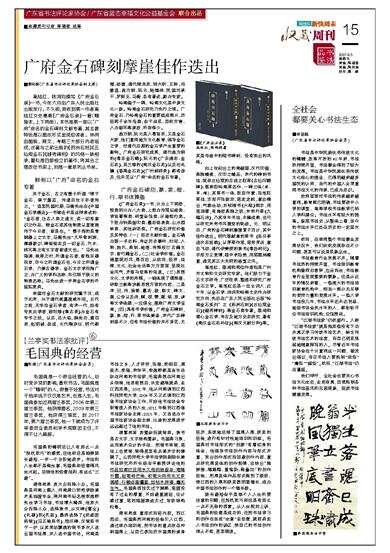 广东省书法评论家协会/广东省蓝态幸福文化公益基金会 联合出品 ■黎向群(广东省书法评论家协会副主席) 高旭红、陈鸿钧撰写《广府金石录》一书,今年六月由广东人民出版社出版发行。不久前,我收到第一作者高旭红女史惠寄《广府金石录》一套(精装本,上下两册)。本书是第一部以“广府”命名的金石碑刻文献专著,其主要特色是以图志形式呈现给读者。体例由图版、释文、考略三大部分内容组成,该著与之前出版的《药洲石刻》《五仙观金石》《越秀碑刻》的风格一脉相承,看似是四部独立的著作,将其合之摆放在书架上,则是一套系列丛书矣。 鲜有以“广府”命名的金石专著 关于金石,古之有墨子所谓:“镂于金石,琢于盤盂,传遗后世子孙者知之。” 迨至民国时期,马衡先生在《中国金石学概论》一书绪论中是这样表述的:“金石者,往古人类之遗文,或一切有意识之作品,赖金石或其他物质以直接流传于今日者,皆是也。” 墨子指的是青铜器上之文字,马衡先生“凡甲骨刻辞、彝器款识、碑板铭志及一切金石、竹木、砖瓦等之有文字者皆遗文也。”马先生强调,商周之时,所谓金石者,皆指乐器而言,非今之所谓金石也,今日之所谓金石学,乃兼古器学、金石文字学而推广之,为广义的学科名称,非仅限于狭义的物质名称。马先生进一步将金石学的外延拓宽矣。 我国对金石文献的研究肇于汉,成于北宋,兴于清代乾嘉道咸年间。五代之前,无专治金石学者,有宋一代,始有专攻此学者,欧阳修《集古录》为金石有专书之始。以后,吕大临、薛尚功、黄伯思、赵明诚、洪适,元代陶宗仪,明代都穆、杨慎,清代顾炎武、钱大昕、王昹、冯敏昌、翁方纲、阮元、陆增祥,民国刘承干、罗振玉、马衡,各有著述,蔚为专家。 岭南偏于一隅,岭南文化是中原文化一脉。岭南金石研究乃先行之域。广府金石,乃岭南金石的重要组成部分,历经两千余年沧桑,由于战乱、自然灾害、人为破坏等原故,所存渐少。 翁方纲、阮元是入粤官员,又是金石大家,他们重视地方文化教育,倡导金石之学,对清代后期的金石学产生重要的影响。广府金石研究成果,清代翁方纲的《粤东金石略》、阮元的《广东通志·金石志》、吴兰修的《南汉金石志》以及汪兆镛《番禺金石志》《广州城砖录》都有涉及,但未见以“广府”命名的金石专著。 广府金石碑刻,篆、隶、楷、行、草书体兼备 《广府金石录》一书,分为上下两册,按类别分为八大类,上册为寺观坛庙类、学宫署衙类、祠堂会馆类、示谕规约类。下册为钟鼎玺印类、墓志铭表类、山水园林类、其他杂项类。广府金石研究价值及其特色:(一)经史文献价值。金石确为第一手史料,考证历史事件、时间、人物、姓氏、典制、地理、考释校订古籍文字,皆可籍金石。(二)社会学价值。金石涵盖现时风、展百态,从政治、经济、法律、文化、社会生活等方方面面,呈现社会风气、矛盾与变革的信息。(三)思想文化、文学的舟楫。一能体现了儒释道、伊斯兰教等宗教思想方面的内容;二是序、记、传、诰敕、墓志、跋、祭文、碑文、疏、公告以及诗、赋、颂、赞、箴、铭、哀、诔等文学体裁,一应俱全,堪称广府文学宝库。(四)具有书学价值。广府金石碑刻,篆、隶、楷、行、草书体兼备,宋代广东碑刻虽不少,但有书法价值的并不多见,尤其是寺庙中的楷书碑刻,没有突出的风格。 如上世纪出土的南越国、汉代印玺,典雅精美,汉印之精品;宋代的碑刻书法,现存五仙观的古成之狂草《古仙旧题碑》,堪称狂岭南草名作,一碑三体(隶、草、楷),其草书一体,取自怀素、张旭狂草法,字形开张跌宕,笔走龙蛇,意态横出,气韵生动;苏轼榜书《六榕》两字,用笔浑厚,有雍容典雅之致;米芾行草《九曜石诗》,乃其早年书法,未臻成熟,也可以研究米芾书风演变的轨迹。元、明以后,广府的金石碑刻摩崖累千百计,其中佳作迭出。明代陈献章的草书《浴日亭追次东坡韵》,以茅草作笔,笔势灵活,意态飞动;清代伊秉绶的隶书《粤岳祠记》,字形方正宽博,稳中求险绝,用笔圆润凝重,透见其正大光明的庙堂之风。 高旭红、陈鸿钧两位作者均是广州市文物和文史研究专家。他们致力于金石文字研考,广泛收录、整理和研究广府金石之学。高旭红还是一位女词人,近十年,以金石学、诗词和岭南文史作为研究方向,先后在广东人民出版社出版“岭南金石系列”之《药洲石刻》《五仙观金石》《越秀碑刻》等金石类专著。陈鸿钧潜心金石学、考古及地方史志研究,著有《南汉金石志补征》《南汉文献廿种》等。 ■收藏周刊记者 陈福香 统筹