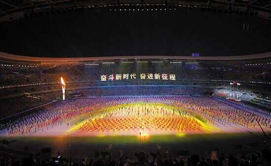 ■9月15日,第十四届全国运动会开幕式在西安奥体中心体育场举行。 新华社发 |