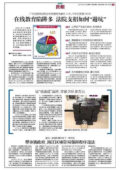 广州互联网法院去年受理相关案件12件,今年已受理160件 记者9月15日获悉,广州互联网法院近日发布涉在线教育纠纷审理情况,指出部分在线教育机构声称能够帮助年轻人们圆梦,实际上却通过各式套
