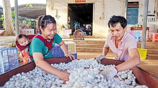 湛江市徐闻县下桥镇工作队发挥组团帮扶优势,推动当地农业转型升级 从“接天桑叶无穷碧”的田间地头到紧张整理白色蚕茧的加工集散车间,湛江市徐闻县下桥镇信桥村的黄胜传始终精神饱满、干劲十足,指着烘干区旁已经收拾出的空地,他说,明年村里将在这里建起自己的蚕丝被加工车间,话语里满是期待;彼时,陈大林正在自家的店铺里忙碌,近期通过金融帮扶贷到38万元款项的他,赶在九月、十月当地农户集中耕种的时节进了一批农用物资,不仅及时满足了农户生产需求,店铺营业额也达到理想……这是下桥镇农业生产的侧面。 下桥镇是典型的农业镇,除了种桑养蚕,蔬菜种植是该镇12个行政村和1个镇农场的主导产业,辣椒、玉米、茄子、韭菜等均是当地农户热衷的农作物。然而长久以来,下桥镇农业产业多处于自发状态,缺乏规模效应和特色品牌。由海关总署广东分署和中海油深圳分公司等两家中直驻粤单位组团而成的驻镇帮镇扶村工作队(下称“驻下桥镇工作队”)进驻徐闻县下桥镇后,针对该镇当前产业发展特点,与当地确定了“引入龙头企业,推动农业转型升级,发展农业加工服务产业,壮大集体经济”的农业产业发展思路。目前,驻下桥镇工作队已经与意向农业龙头企业接洽。 万亩桑田覆盖乡村 推动桑蚕产业升级拓展 如今,整个信桥村有800多户人家2400人左右以种桑养蚕为生,万亩桑田产茧1500吨左右,桑蚕年产值达到6000万元。与之相应的是桑蚕生产条件的改善。 近年,桑田的灌排两用渠修建起来了,“一村一品”项目申请成功后,信桥村也正在计划重新修整机耕路等农田水利设施。作为村支书,黄胜传结合村里生产需要,向当地有关部门申请资金建设冷库,分别于2012年和2015年建起了两个冷库。“烘干区也是在当地党委政府支持下搭建起来的。” “我们明年应该就可以在这里制造加工蚕丝被了。”合作社的烘干区旁,一片空地已被收拾利落,顶上搭起了铁皮棚子,黄胜传跟新快报记者说道,村里正在考虑购置加工设备,再过不久,他们的桑蚕就能实现“三产融合”。驻下桥镇工作队进驻后,也多次到信桥村调研,并邀请科技特派员团队开展专题讲座,谋划科技帮扶方案,共同推动该村桑蚕产业升级拓展,打造完整产业链。 进驻50天金融帮扶180万 黄胜传是信桥村最早开始种桑养蚕的几户人家之一。 1989年左右,他便在自家田地里种起桑树、屋子里养起蚕,凭借着对桑蚕的热情和耐心,黄胜传慢慢摸索出种养心得,逐步成为种养大户。“后来他就提供种苗给附近的村民种,谁家的蚕宝宝有什么问题,他也热心提供技术指导。”当地农业局工作人员介绍到。由此,信桥村桑田开始逐步扩大,养蚕的人家也越来越多。“村里22个自然村,有18个村的乡亲都种桑养蚕,从这儿一片片连过去都是桑田,共有1万多亩。”站在半人高的桑树旁,黄胜传说道,身后尽是绿桑叶,望不到边。 而在信桥村委会旁的永绿农产品农民专业合作社里,黎俏文、谭翠茵夫妇正在分拣、整理即将装车发往广西的蚕茧,两人相顾默契微笑、各自专注整理手中的白色蚕茧,妻子背上未满一岁的婴儿不吵不闹、乖巧陪伴。他们身后的冷库门前,小型货车上已经装上一筐筐收拾好的蚕茧。黄胜传说,这是今天发出的最后一车蚕茧,到了冬季,蚕就停止吐丝,把眼前收来的蚕茧发货完毕,他们也就暂停这一年的“桑蚕作业”了。 黄胜传说,从2009年合作社成立至今,运来蚕茧、分拣称重、发车一套流程周而复始地在这里上演。种桑养蚕发展成了信桥村的主导产业。2020年,村里还建起了桑蚕育苗基地,幼龄蚕苗先在这里孵化生产而后进入到村民家中,食桑吐丝。 除了参与谋划和助推当地特色产业,驻下桥镇工作队也发挥组团帮扶优势和金融助理力量,从金融帮扶入手,解决农户资金需求助力产业发展升级。陈大林就是其中一位受益者。 陈大林的店铺位于下桥镇车来车往的街道旁,乍一看是一家五金店,实际上他还经营着各类农资。“这款滴灌带特别受农户欢迎,从去年开始进货,在我们这里卖得很好。” 其实,不久前陈大林还在为扩大经营而犯愁。下桥镇农民多在9月至11月耕种作物,当时陈大林想趁着时节新购进一批农资,却被资金止住脚步。愁眉之时,工作队送来了农行徐闻县支行惠农e贷的讯息,具体了解工作队金融帮扶内容后,陈大林提出贷款申请,很快便收到了38万元的贷款金额。有了这笔贷款,他便大批量进货,“我进得多,成本降下来了,卖给农民的价格也便宜了。”陈大林坦然笑起,连赞工作队“乡村振兴工作做得好。” 实际上,驻下桥镇工作队在进驻50天左右,便依托农行下桥镇支行帮扶25户农户进行金融建档,并发放了11笔合约180万元的贷款。该工作队金融助理郑炎南说,他们在日常的走访调研中了解农户的资金需求,并通过联合村委会开展金融宣讲活动、重点对种植大户展开调研等方式,让当地群众了解金融帮扶政策,点面结合,更好对接需求,从而实现资金支持当地扩大产业规模和转型升级。目前,驻下桥镇工作队仍在持续推进金融帮扶政策的宣传工作。 驻下桥镇工作队队长张志勇提到,当前工作队正在积极巩固好下桥镇的脱贫攻坚成果,同时推进人居环境整治。此外,他们也将持续在助力当地产业发展上发力,“希望在工作队和镇党委政府的通力合作下,这里的大多数农民收入能有所增加。”此外,在“输血