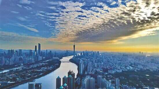 在冷空气笼罩下,昨日的广州天空出现了大范围的鱼鳞云,蔚为壮观。新快报记者 夏世焱/摄