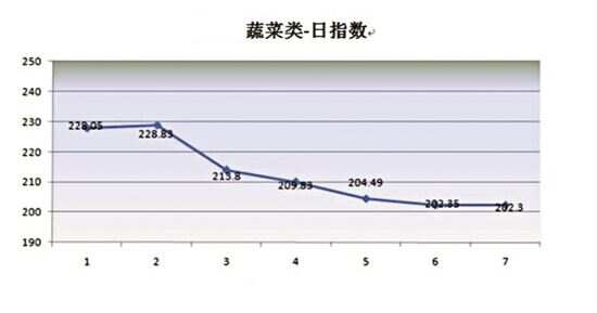 ■广州江南果菜批发市场11月1日-7日蔬菜价格日指数,可见呈下降趋势。 |