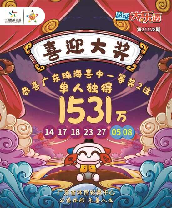 新快报讯 记者陆妍思报道 11月8日,超级大乐透第21128期开奖,当期全国中出9注一等奖,其中珠海一票独中2注765万元基本投注一等奖,单票总奖金1531万多元。 珠海20元倍投票建功 超级大乐透第21128期的中奖号码为:前区“14、17、18、23、27”;后区 “05、08”。当期前区号码大小比3:2,最小号码为“14”,“01”-“13”区间走空,开出一组连号“17、18”,其中“17”为上期重号,同时开出一组同尾码“17、27”;后区则开出一小一大的奇偶组合。 本期全国共开出9注一等奖,其中2注1378万元(含612万元追加奖金)追加一等奖,花落内蒙古通辽和山东日照;还有7注765万元基本投注一等奖,分落广东珠海(2注),北京海淀、黑龙江绥化、浙江金华、安徽蚌埠和安徽滁州。 据核查,珠海的2注基本一等奖花落兰埔路2号7栋01-02铺的4403003016体彩实体店,中奖的彩票是一张20元2倍投5注单式票,总揽奖金1531万多元。值得一提的是,这张中奖彩票的出票时间为2021年11月8日19:53:38,也就是距离停售时间不足7分钟。可惜的是,中奖者没有采用了追加投注,在单注奖金方面少拿了612万元追加奖金。追加投注是大乐透独有的投注方式,在2元基本投注的基础上,多花1元进行追加投注,可多得80%的浮动奖奖金。 奖池滚存至13.37亿元 同期二等奖开出128注,每注奖金7.44万余元;其中48注采用追加投注,每注多得奖金5.95万余元。追加后,二等奖单注总奖金13.39万元。 本期全国销量为2.82亿元,为国家筹集彩票公益金1.01亿元。奖池方面,本期开奖结束后,13.37亿余元滚存至11月10日(周三)开奖的第21129期。