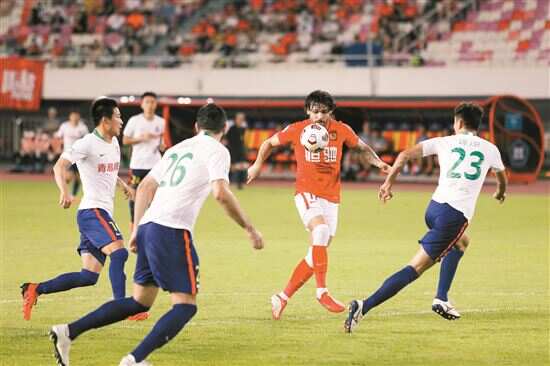 ■高拉特(右二)代表广州队出战。 新快报记者 毕志毅 摄 |