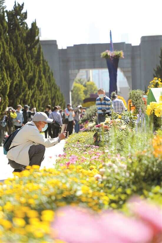■一系列菊花胜景吸引市民驻足欣赏、拍照。新快报记者 林里/摄 |