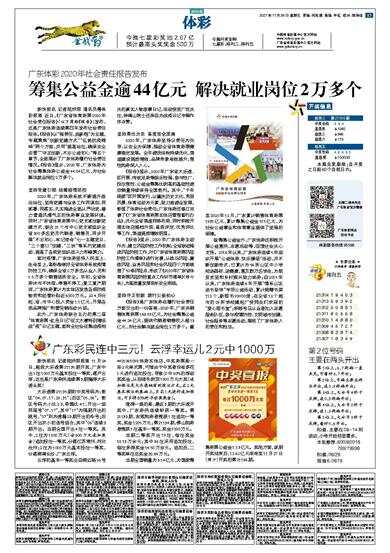 广东体彩2020年社会责任报告发布 新快报讯 记者陆妍思 通讯员粤体彩报道 近日,《广东省体育彩票2020年社会责任报告》(以下简称《报告》)发布,这是广东体彩连续第四年发布社会责任报告。