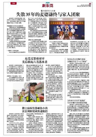 世相 警方组织专人办案 新快报讯 记者杨英杰报道 日前,东莞市公安局长安分局霄边派出所举行了一场认亲活动,失散35年之久的麦德谦终于在这一天与家人团聚。 幸福姗姗来迟共同见证团