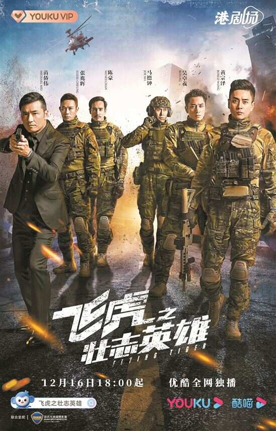 新快报讯 记者徐绍娜报道 由优酷和邵氏影业联合出品的警匪悬疑剧《飞虎之壮志英雄》将于12月16日正式开播。该剧由苗侨伟、黄宗泽、吴卓羲、张兆辉、马德钟、陈豪、郭晋安、梁竞徽、萧正楠等共同出演,豪华班底再度集结,演绎飞虎队员打击犯罪、将罪犯绳之以法的热血警匪故事。 作为经典IP《飞虎》系列的第三部,《飞虎之壮志英雄》的剧情同样跌宕起伏、扣人心弦。讲述的是一单生化武器交易被恐怖组织演变为剧院挟持人质事件,飞虎队员们临危受命,与罪犯斗智斗勇,成功解除危机。 除了精彩的剧情,两部前作的原班人马苗侨伟、黄宗泽、吴卓羲纷纷回归坐镇,也令不少有“飞虎”情结的观众表示“安心”。另外,猛将张兆辉、马德钟的加入,也为本剧平添了一份惊喜和剧情保障。中青两代不畏艰险的飞虎成员,将携手重现那些感动我们的“飞虎精神”。 在首次公开的预告片中,复杂烧脑的剧情、持续升级的罪案、漂亮扎实的打斗动作,都让观众提前感受了一把热血涤荡的兴奋。不同的英雄有着不同的故事,与前代的作品不同,本剧中英雄会成长,亦有可能牺牲,他们的结局走向也将成为新的悬疑元素。