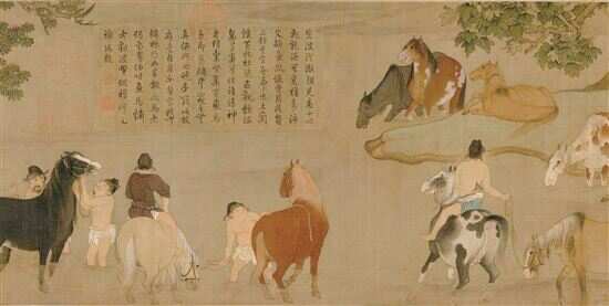 ■赵孟頫 浴马图(局部) 故宫博物院藏 |