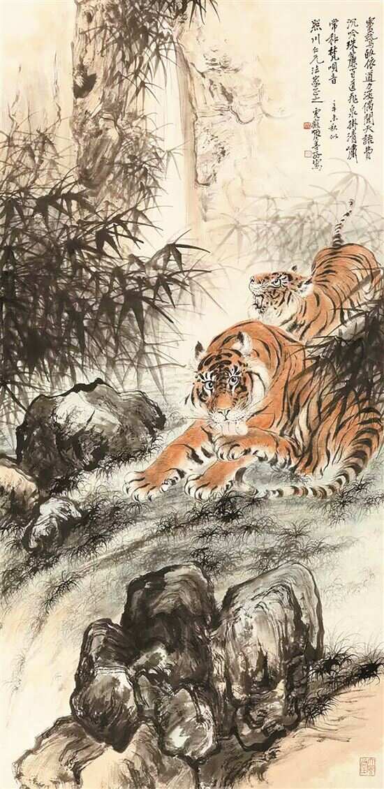 广州画院名誉院长张绍城: ■收藏周刊记者 梁志钦 十二生肖是中国画创作题材中比较常见的内容,明年是虎年,老虎这样的形象,在中国画里,更是老百姓喜闻乐见的题材。 中国画如何画老虎?纯粹的花卉相对会简单,画家多喜欢在花卉里配上动物,是较容易让群众接受的。当然,画动物,好像难度也不高,掌握特征,多画便可。 老虎是猫科,但不能把猫放大。它们的体型、五官的特点不同,虎的鼻子大,两眼眼距不宽,身体庞大。掌握了基本结构,才可以解决笔墨问题,另外,主体与配景如何配搭亦是个难题。 我早在上世纪八十年代,就开始探索老虎的题材。画虎至今,已有三十多四十年,也研究过了很多历代画老虎名家的作品。但中国古代画老虎题材能为大师的,并不多,宋代有一位画老虎不错的,叫法常,存世作品也不多。而近代则有张善子,他画了很多老虎,主要是用勾线的办法,此后也有他的追随者画了不少老虎题材。我们岭南也有高剑父、何香凝等画了不少老虎和狮子题材,他们画的老虎题材更多的是具有象征意义,形容民族的觉醒。之后也有北京名家刘继卣也画了不少老虎题材作品,方楚雄也画过不少。 以上所说,表现老虎的手法主要有两种,一种是以张善子为代表的勾线为主的手法;另一种则以何香凝为代表的岭南派手法。张善子是以山水画的石头、松树以及愿景来配搭老虎,而何香凝的老虎则较少背景,我综合了他们两种办法的利弊之后,最后选择了用茅草来搭配老虎,并让草穿过或遮挡一下,让虎处在草丛之中,这样画面能汇成一体。 由于老虎给人的感觉,是“野性”的,画面不适合画得太工整,有老虎出没的地方,都是相对原始的地方,很少花卉的,如果在老虎题材的画面中,搭配一些大红大紫的花卉,是很不协调的,或者在老虎的作品中,背景配瀑布或者海景或者远景,则更容易庸俗。所以,我画的老虎,都不会画远景的,最多加几笔潇洒的野草,这样也使得画面的笔墨能够聚集在老虎身上,这是我对上一辈画家成功的实践探索之后总结出来的。比如黄胄画毛驴,他最多是配一些少数民族,一些新疆少女或者干脆只画毛驴,他比较有代表的毛驴作品,几乎都没有搭配其他元素的。徐悲鸿画的马,也几乎只有马,不配其他元素。 这里也有一个共同的特点,老虎、毛驴、马等这些都是比较大型的动物,这样体量的动物,背景都不好搭配。猫、狗、兔等还相对容易。 要想画好动物,基本对其体型结构、动态特点以及生活习性等有了了解之后,能够做到胸有成竹地默写,那基本可以了。 每个画家的追求各有不同,我认为,虎与牡丹类似,已是入俗的画材,尤其在照片发达的今日,画得逼真不再是唯一的追求。古人曾指出“谨毛失颜”的问题,意思是过于勾出每一根毛线,则易丢失原有的面貌。画家的追求主要应在立意上,在精神层面上努力。 名家评论 赵孟頫《浴马图》的由来 《浴马图》是元朝大画家赵孟頫的名作,大约作于1308—1311年,当时是赵孟頫应元武宗的要求而绘制的作品。 以马为题材的绘画,是赵孟頫的专长。史书上记载说,有一次赵孟頫在书房里连日不出,夫人放心不下,于是前往探视,结果却发现赵孟頫正四肢着地在地上爬,嘴里还模仿着马的叫声……原来,赵孟頫痴迷于马,达到了人马合一的地步。 赵孟頫一生画了大量的以马为题材的优秀画作,他也成了中国古代最著名的画马大师之一。 对于元武宗的命题之作,赵孟頫不敢大意,赵孟頫冥思苦想之后,终于交出了自己的“作业”——《浴马图》,画中共有14匹马、 9个人,青绿设色。全画由观水、入浴、出水上岸、穿衣遛马等几个部分组成,描绘的是一天中的夕阳景色。画中的人物神态优和从容,马儿健壮温顺,人、马、天地之间洋溢着和谐的生命互动。这正是元武宗希望看到的那种感觉。 但赵孟頫在画中表现的人和马,却并非当朝:画中的人身着唐装,马为进口的贡马!这一方面可以理解为赵孟頫对盛唐时期繁荣景象的向往和赞叹、把元朝比作盛唐进行赞美;另一方面也可以理解为对当朝实际现状的回避。