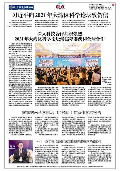 新快报讯 记者陈慕媛 庄嘉宝报道 2021年大湾区科学论坛开幕前一日,纳米科学分论坛举行,逾百名纳米科学研究领域的院士、专家、学者及青年人才齐聚广州,聚焦纳米科学前沿,探讨纳米领域的发展趋势及其