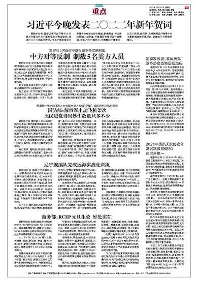据新华社电 区域全面经济伙伴关系协定(RCEP)将于2022年1月1日正式生效。商务部新闻发言人高峰30日表示,RCEP生效将给包括中国在内的区域内企业和消费者带来实实在在的好处。 202