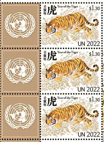 据新华社电 联合国邮政管理局21日在纽约发行中国农历壬寅虎年特别版邮票版张,庆祝中国农历新年的到来。 虎年邮票版张由每枚面值1.30美元(1美元约合6.34元人民币)的10枚邮票组成,整个版张定价15.95美元。邮票左半部分为联合国会徽图案,右半部分为中国设计师潘虎创作的“虎嗅蔷薇”图,描绘了一只猛虎徜徉在蔷薇丛中的情景。 联合国邮政管理局2010年5月首次发行以中国生肖为内容的邮票,到2021年已发行了首轮12张生肖邮票,今年的虎年邮票开启了第二轮生肖邮票的发行。