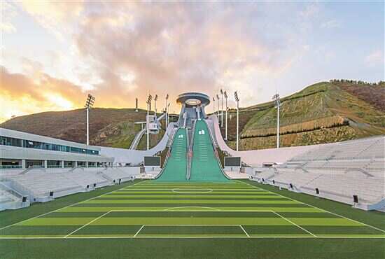 ■“雪如意”山下看台区中央位置隐藏着一个标准的足球场。 受访者供图 |